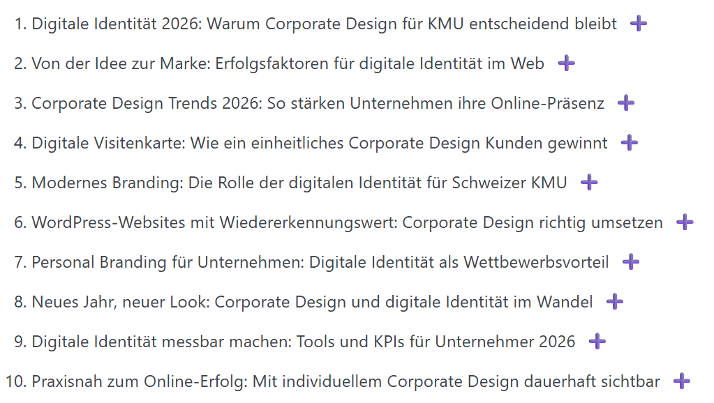 Nach dem Scannen Ihrer Website können Sie bis zu 50 Artikel pro Thema erstellen.